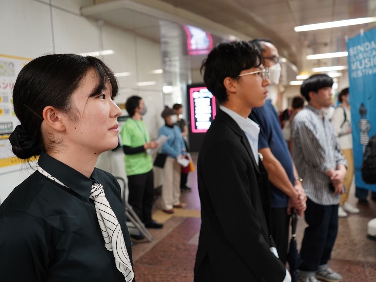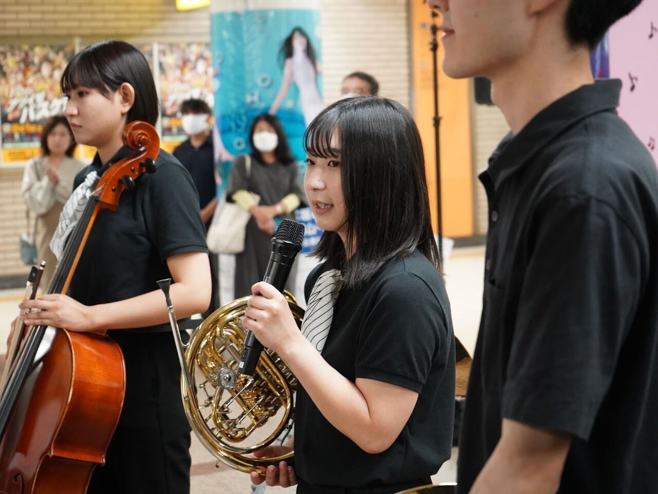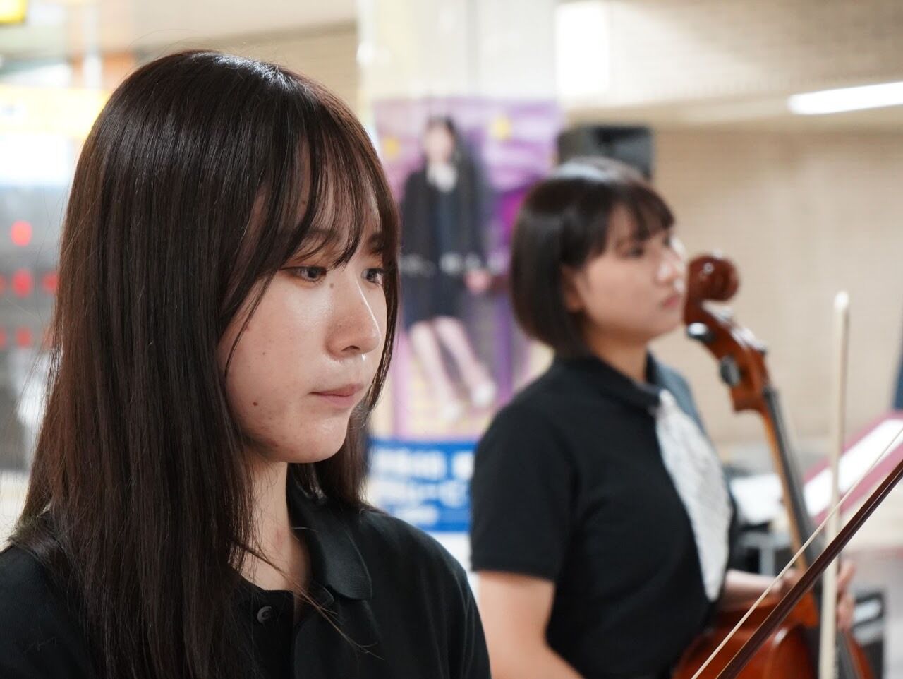 We interviewed two performers at the subway concert: Va. Naganuma Yuri and Fl. Ishikawa Keika.