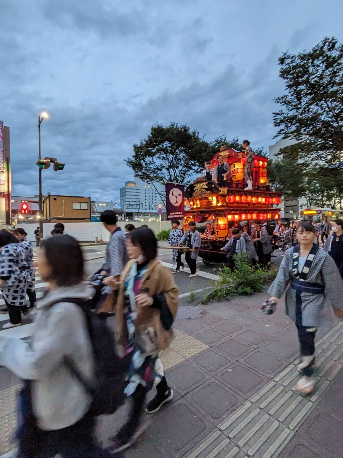 After practice, the area in front of Fukushima Station was abuzz with activity as participants took part in the Fukushima Autumn Festival floats.