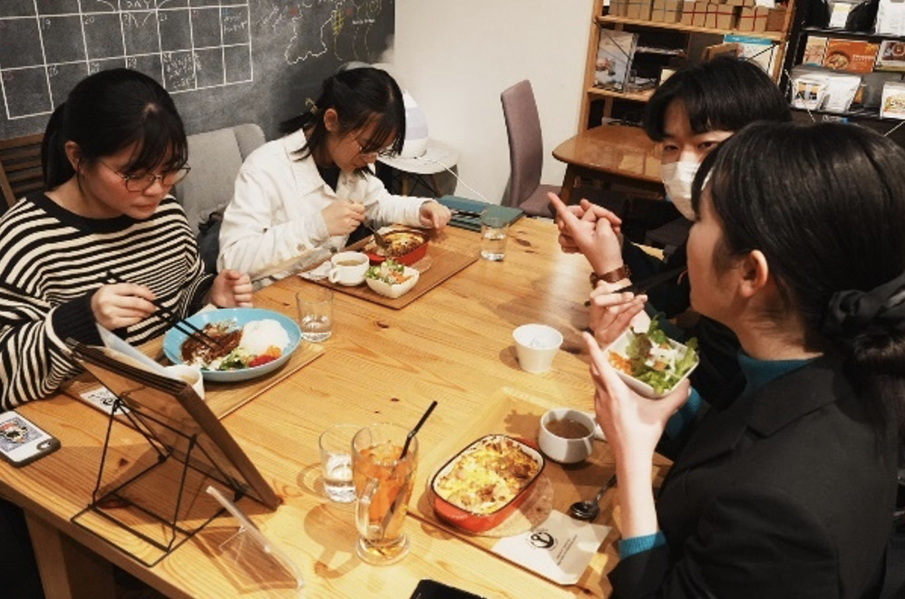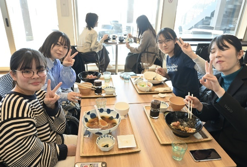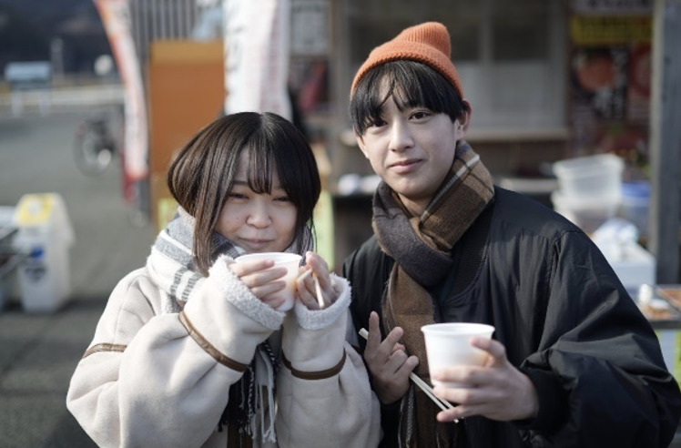 They seem to be having fun on the way. This is a photo of the Fukushima group at Minamisanriku Sansan Shopping Street. The Wagatsuma siblings and the captain are taking a break from crab soup.