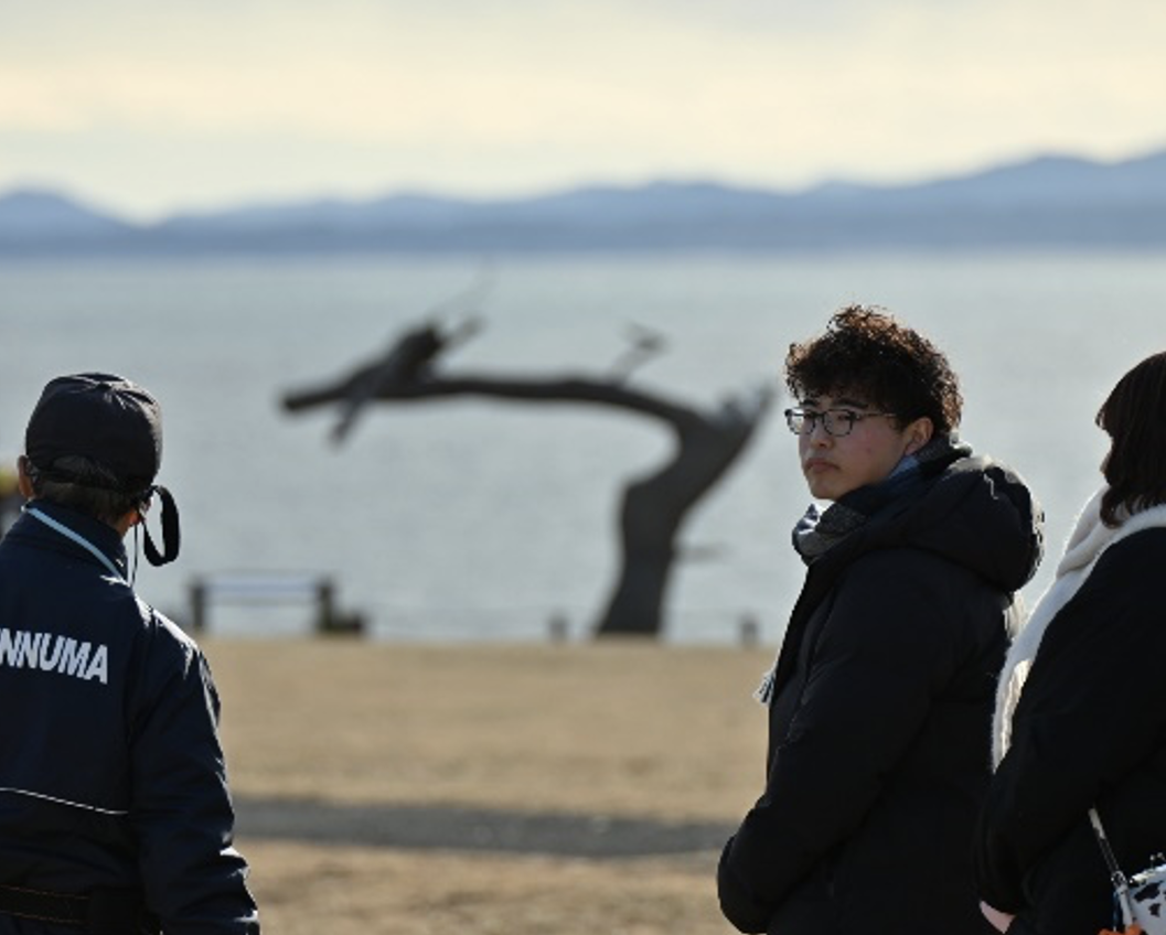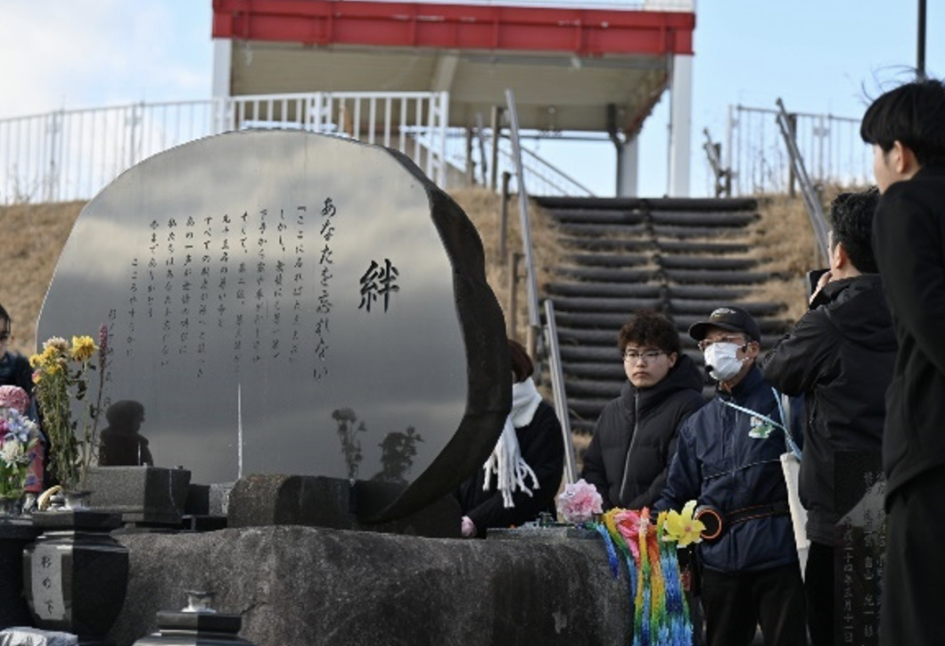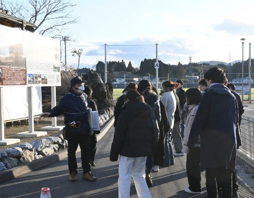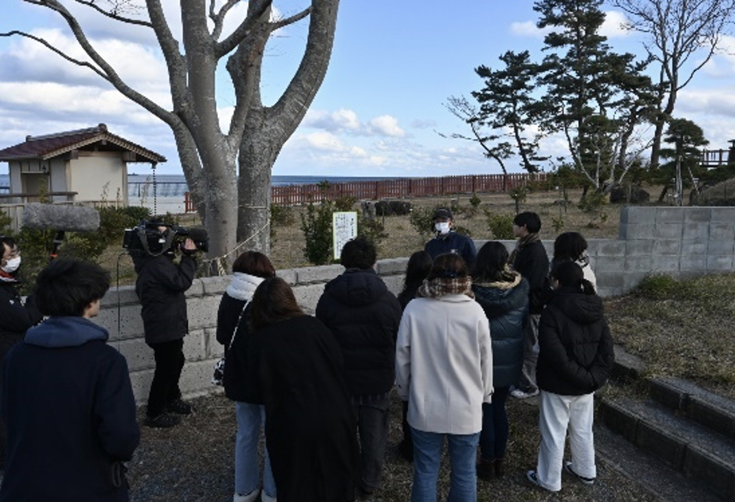 The group visited an 11m high hill that was designated as an evacuation shelter for the Suginoshita district at the time of the disaster. Many residents had taken refuge here, but the tsunami reached a height of about 18m, far exceeding expectations, and 93 people died in the entire district. The memorial was erected in 2012 by the bereaved families' association.