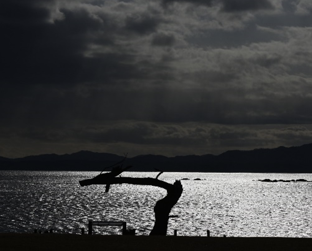 Next, we headed to the "Dragon Pine" at Iwaizaki. The Dragon Pine is a single pine tree at Iwaizaki, which is also known for the Spouting Rock. This pine tree, which has continued to stand despite being damaged by the tsunami, is one of the symbols of Kesennuma's recovery.