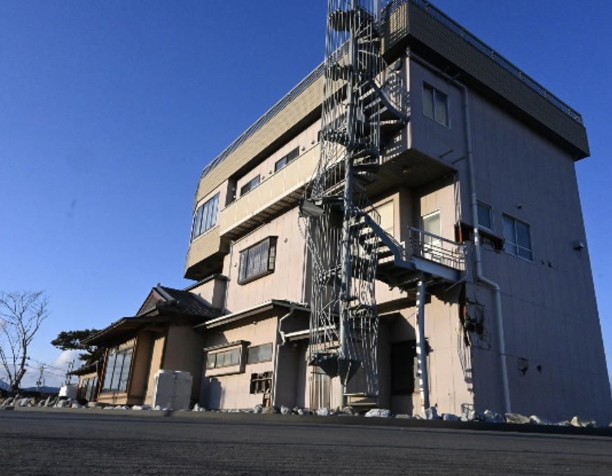 Moving on from Hashikami district, we visited the former Abe family residence, the "Spiral Staircase of Life." This is a private vertical evacuation shelter that was built four years before the Great East Japan Earthquake, as a lesson learned from the 1960 Chilean earthquake. As a result of regular training, 30 people were able to evacuate on the day of the earthquake.