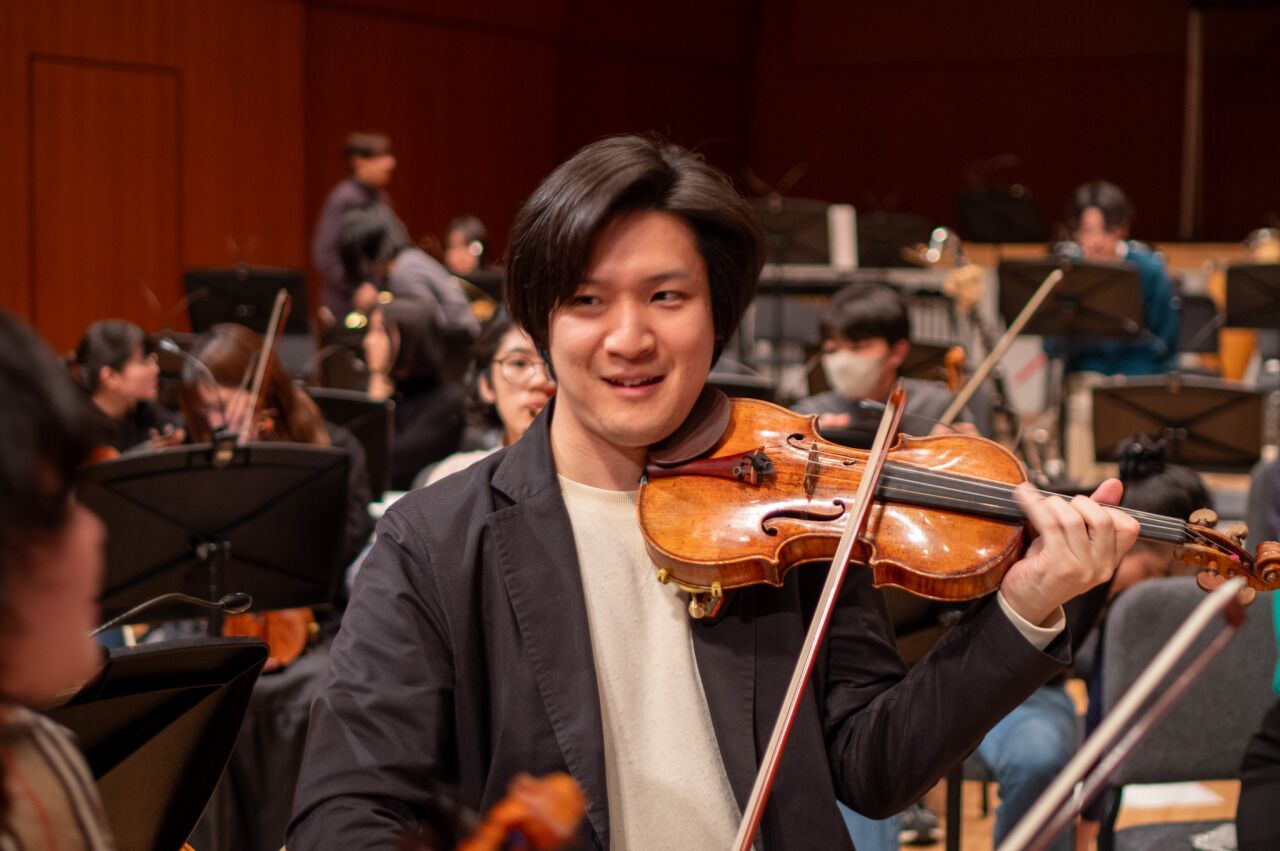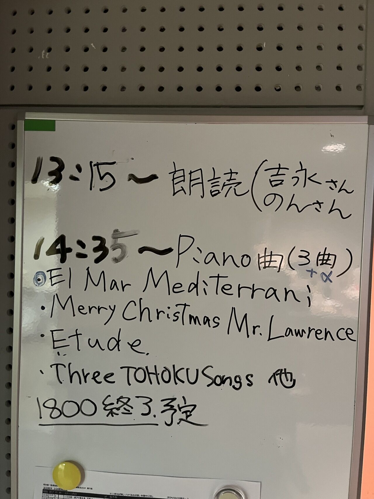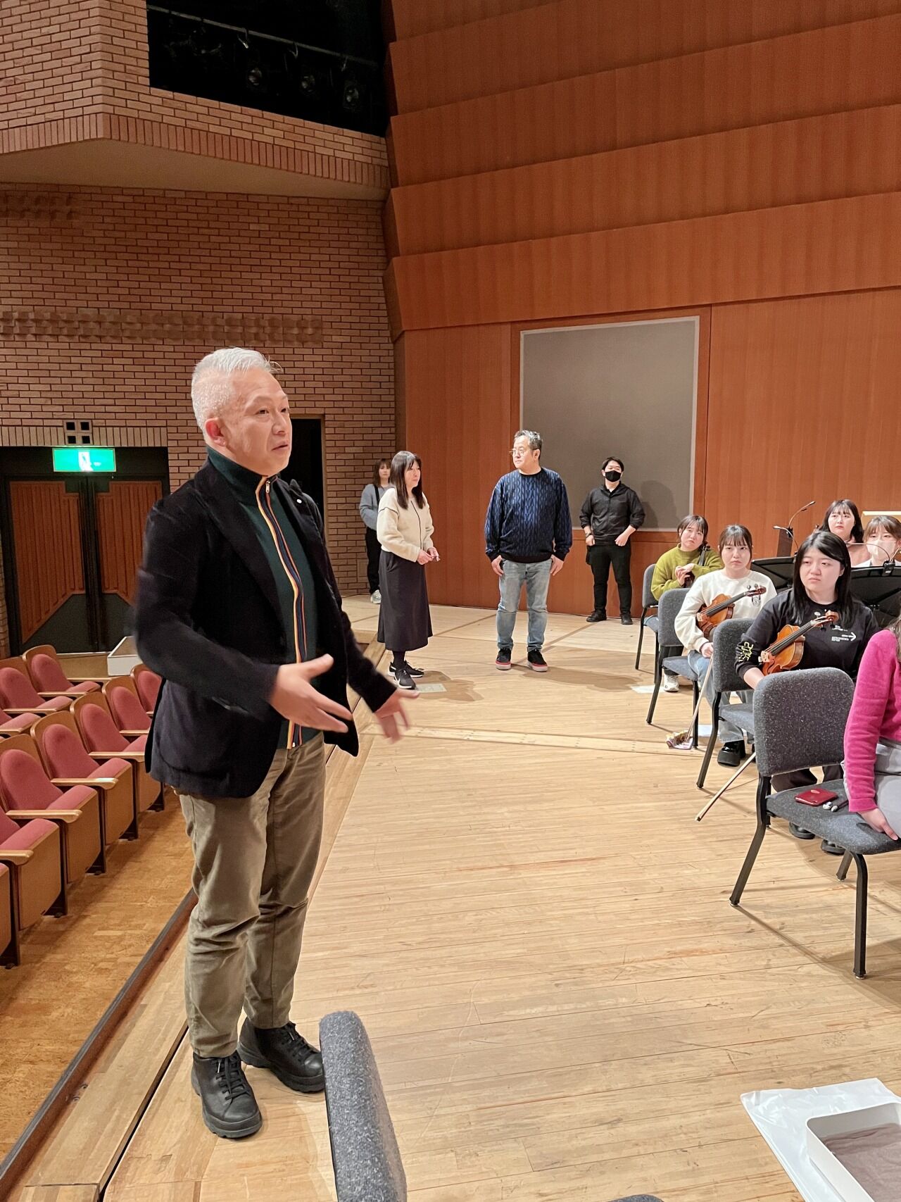 This morning, guest violinist Tatsuki Narita joined us and we were grateful to him for greeting us with a cordial and enthusiastic response, in which he spoke of his joy at being able to take part in this concert.