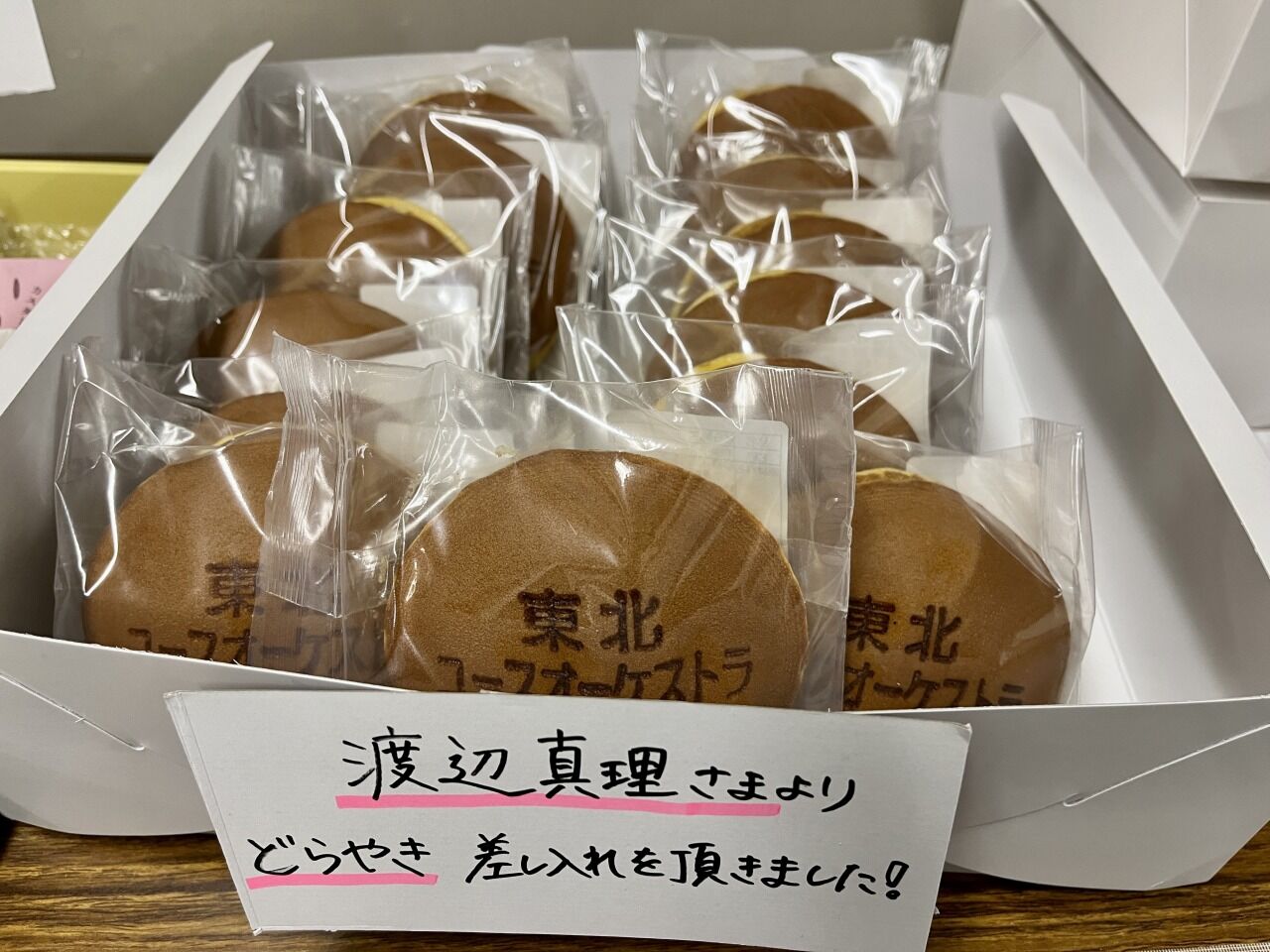 We received the Tohoku Youth Orchestra Dorayaki, an original treat that has become a tradition for the orchestra members, but this year it has a "♡" branded on the back. Thank you very much!