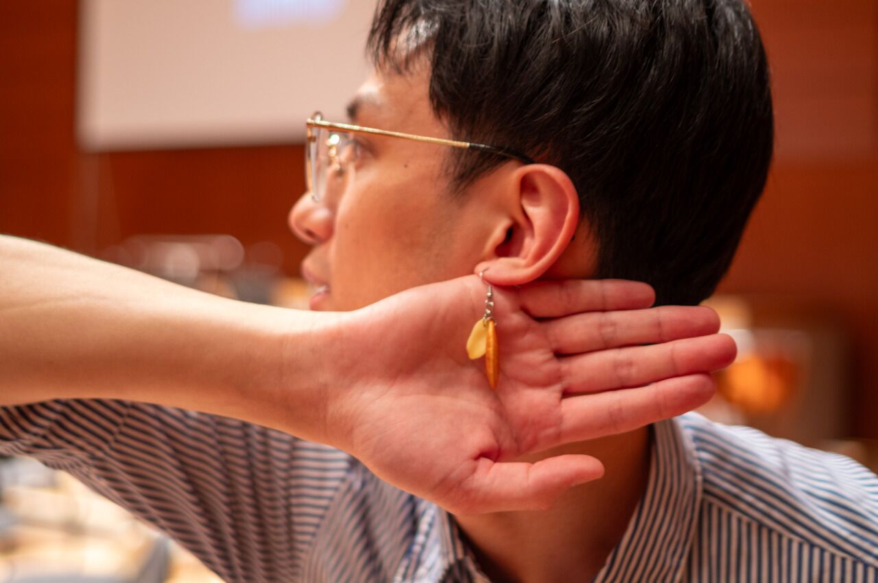 The earrings were "Kakipi" (persimmon-shaped peas).