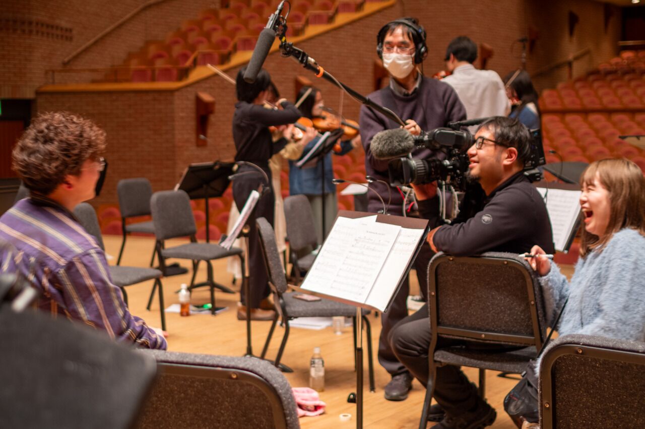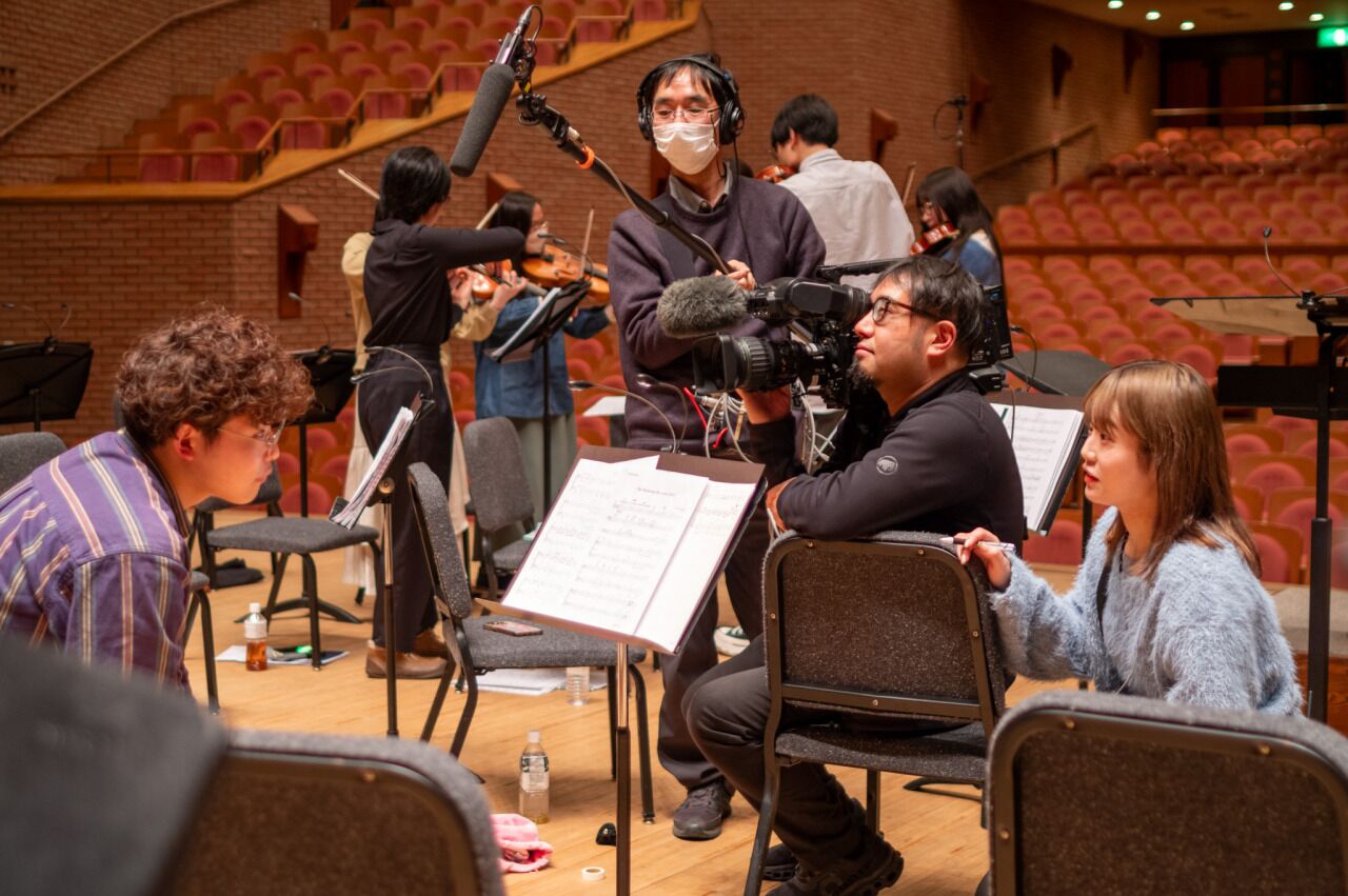 OG director Momoka Kikuchi appears to be asking probing questions related to his connection with the Tohoku Youth Orchestra, which began as a project to inspect and repair instruments after his cello was damaged due to dryness during practice today.