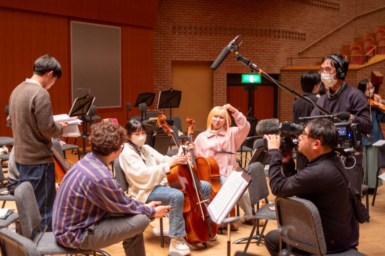 On the other hand, a crew from NHK's ETV special was interviewing the cellists.