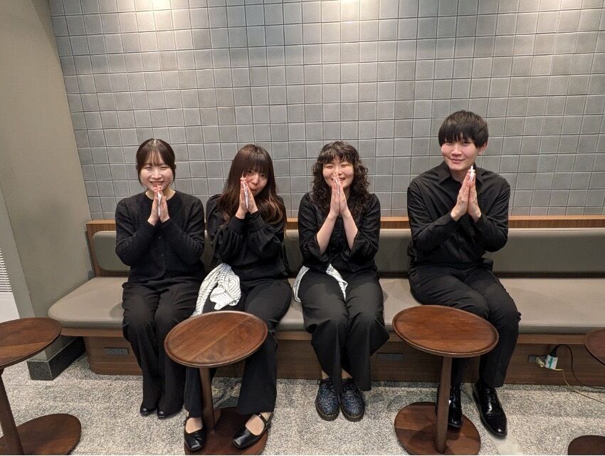 The members who participated were four members total: first violin from Fukushima Prefecture, Mahiro Watanabe (TYO OB), second violin from Miyagi Prefecture, Minami Suzuki, viola from Fukushima Prefecture, Yuri Naganuma, and cello from Miyagi Prefecture, Makoto Hibino (TYO OB).