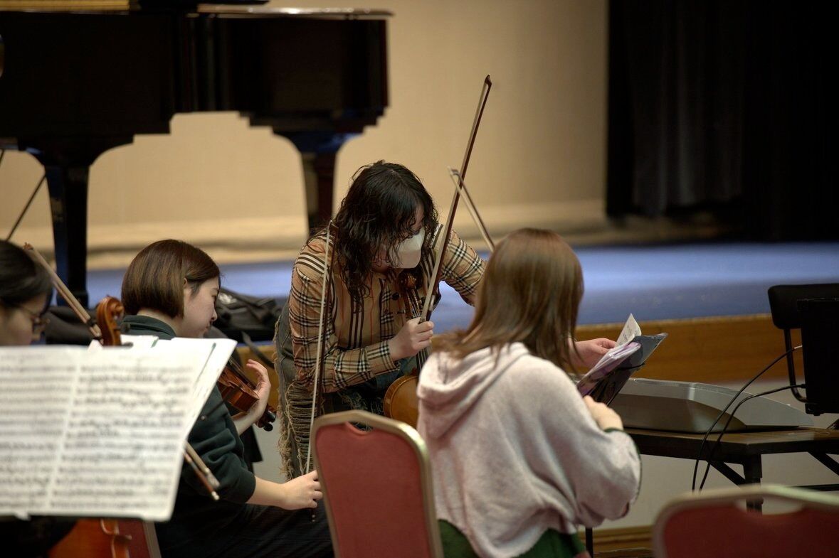 In the morning, the rehearsal began with a full ensemble practice of Beethoven’s Symphony No. 5, “Fate.” Instructors from Music Force as well as tutors joined the ensemble and offered a variety of advice on tone production, phrasing, and other musical aspects. By performing while being mindful of each point, we gradually felt the sound come together and sensed the overall musical quality steadily improving.