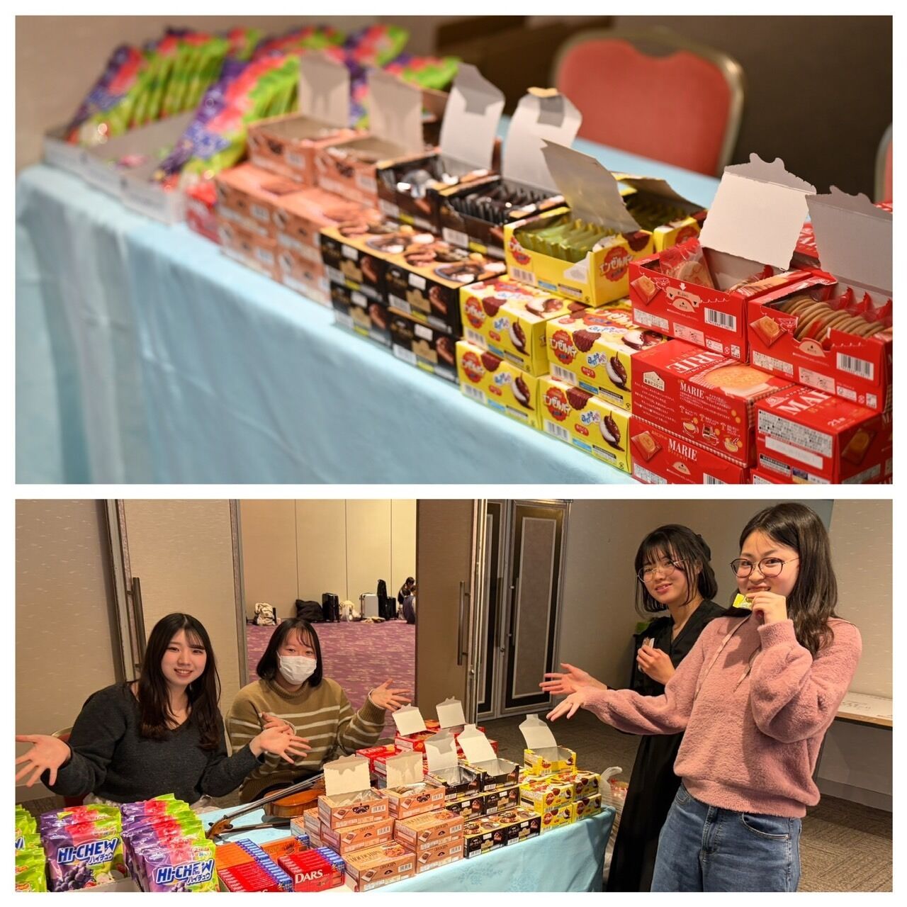 It seems that the pre-meal greeting (“Itadakimasu”) was led by Ms. Shizuku Goto and Ms. Kaho Matsuzaki, both 11th-term members of the clarinet section.
