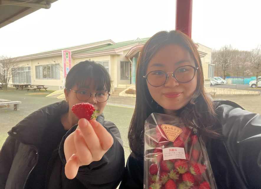 Some other members also stopped by the nearby Iwafune Fruit Park, where they picked up bright red strawberries. That brief break became a wonderfully refreshing moment for everyone.