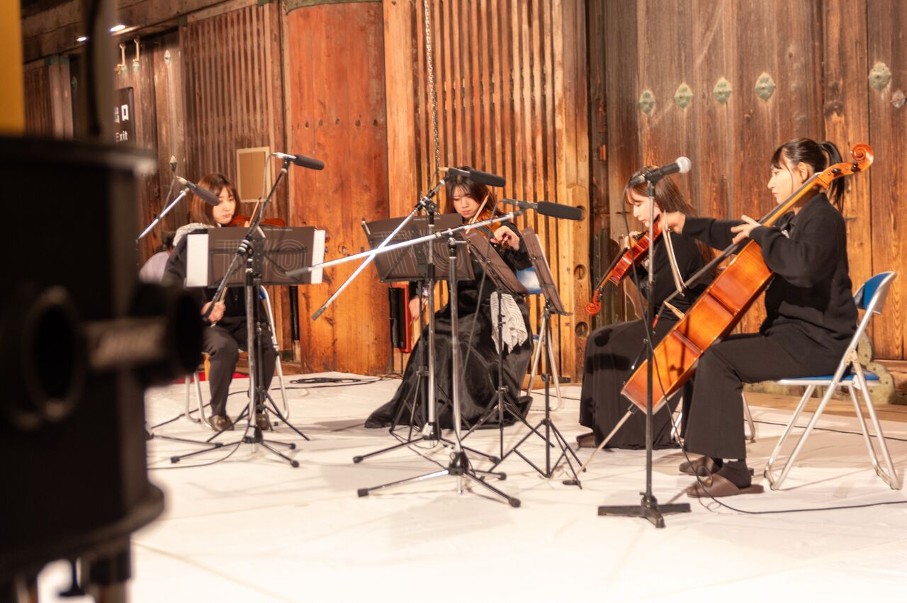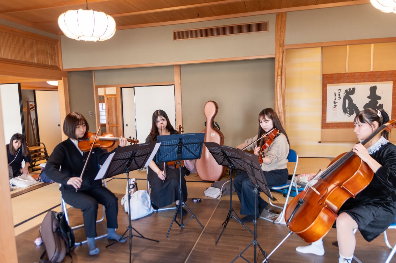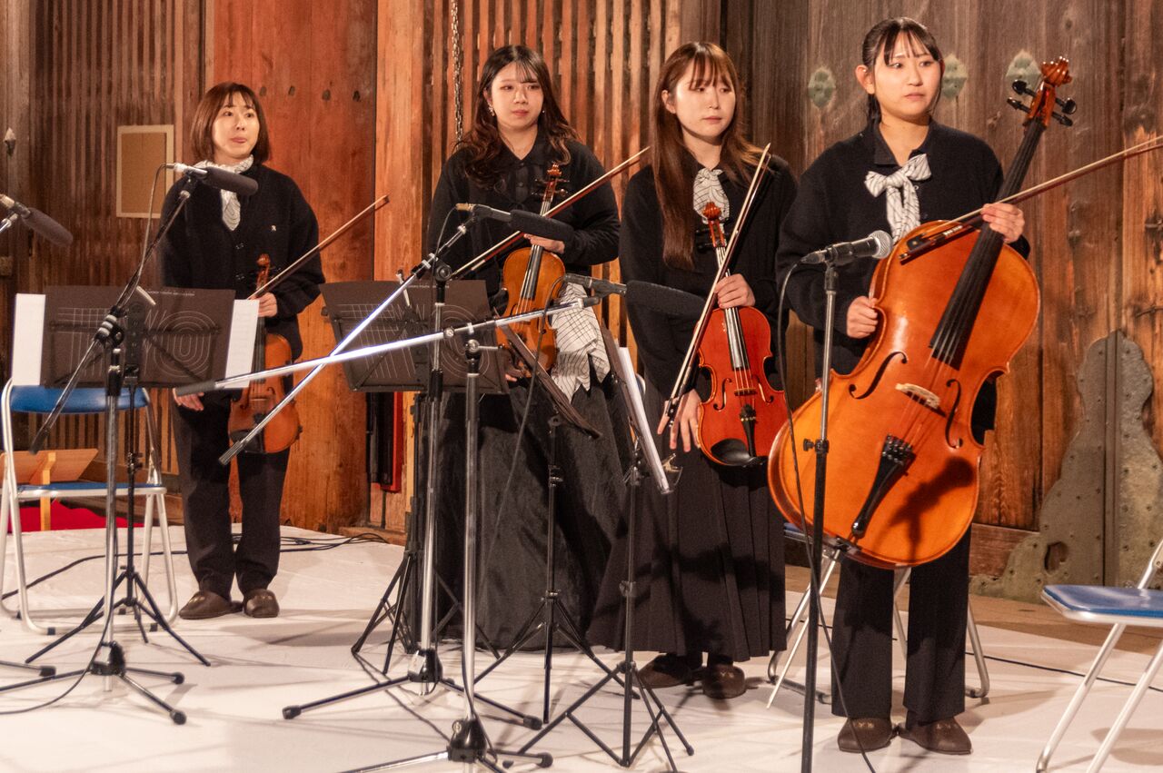 お堂の中に弦楽の繊細なハーモニーが静やかに響き渡り、この「Aqua」の演奏には思わず涙が出たと僧侶の方々や参列のお客さまから言っていただけました。