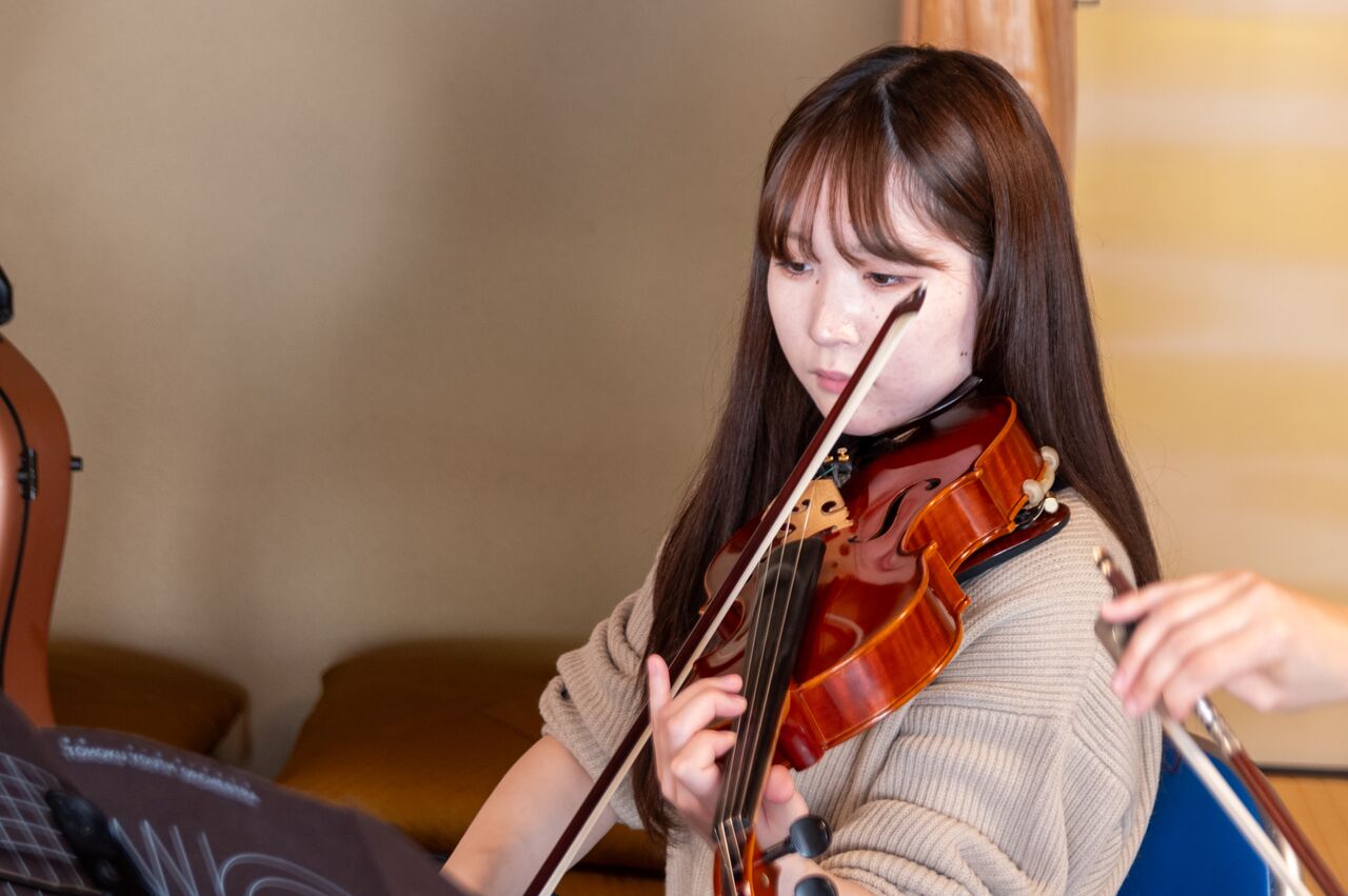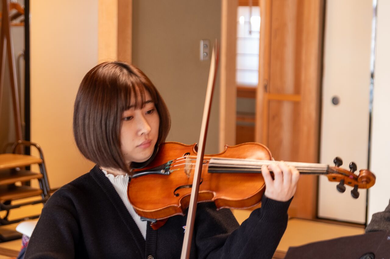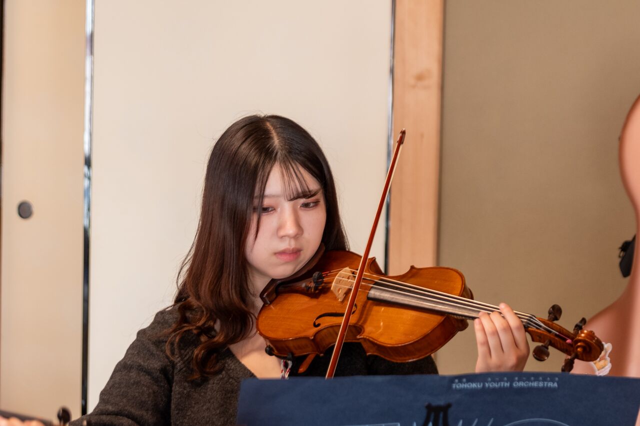 セカンド・ヴァイオリンの伊達叶華さん(福島県出身・大学3年生)