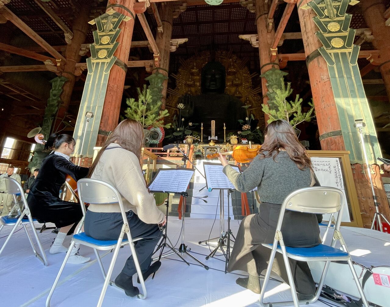 11月27日(水)に東日本大震災物故者慰霊と被災地復興への祈り(主催:東大寺・鶴岡八幡宮)で奉納演奏をさせていただきました。会場はなんと南都の東大寺大仏殿!