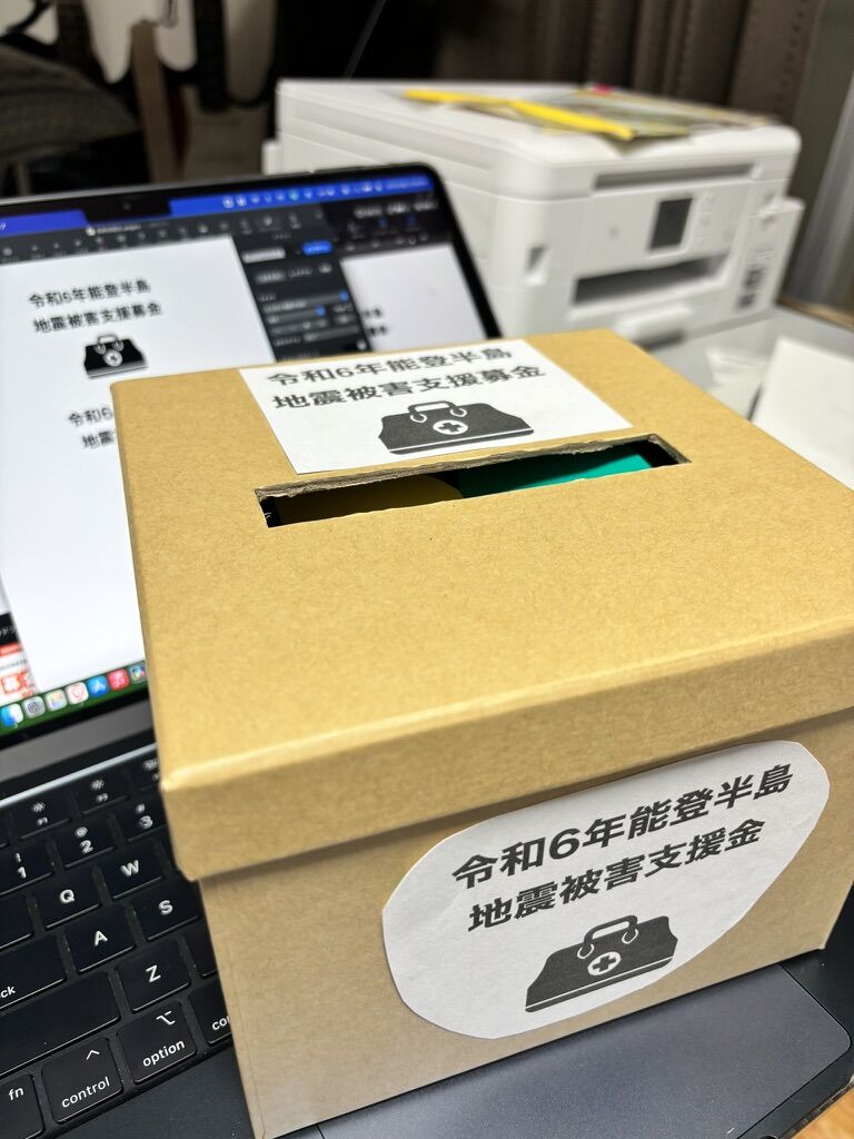 不器用ながら自作の募金箱。