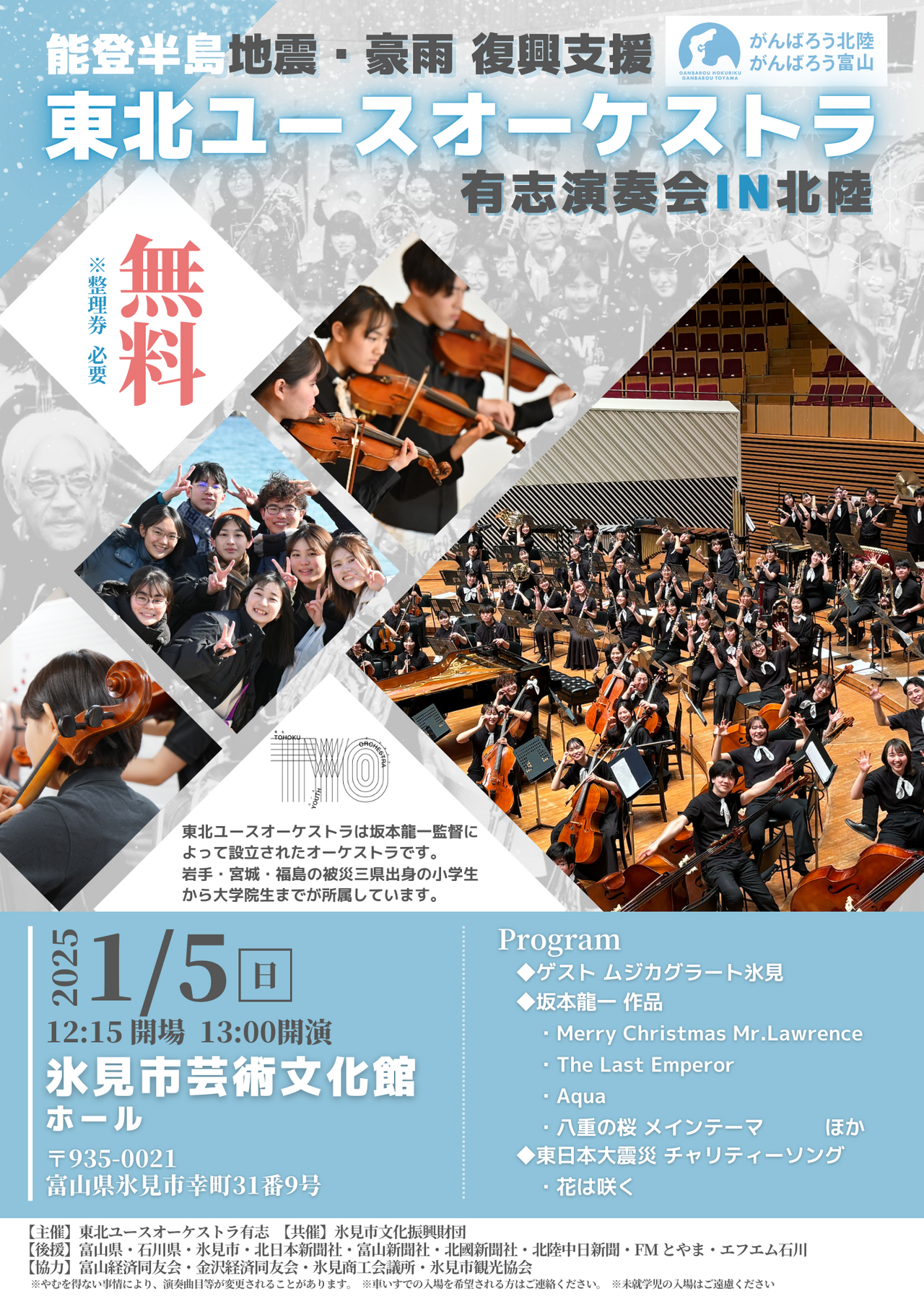 Reconnect-能登半島と東北をつなぐ(令和6年能登半島地震を受けて) 坂本龍一監督追悼 東北ユースオーケストラ演奏会2024 ライブビューイング in 氷見