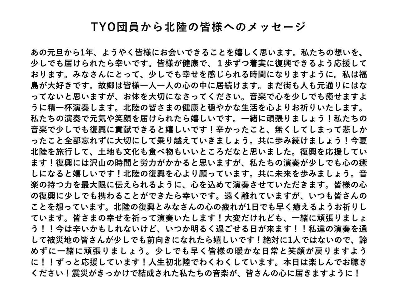 裏面にはTYO団員から北陸の皆様へのメッセージが書かれています。