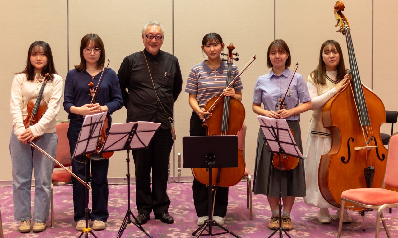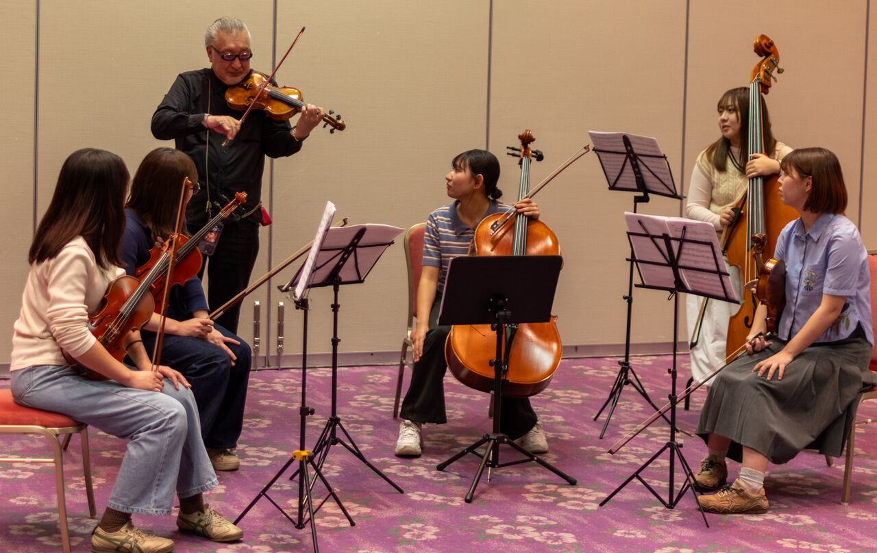 受講生はTYOの団員からVn. 佐々木かのんさん、千葉愛子さん、Va. 長沼由莉さん、Vc. 高橋季さん、Cb.長濱千明希さんの弦楽5重奏が参加し、今年のTYO演奏会で演奏するベートーヴェンの交響曲第5番「運命」をレッスンしていただきました。