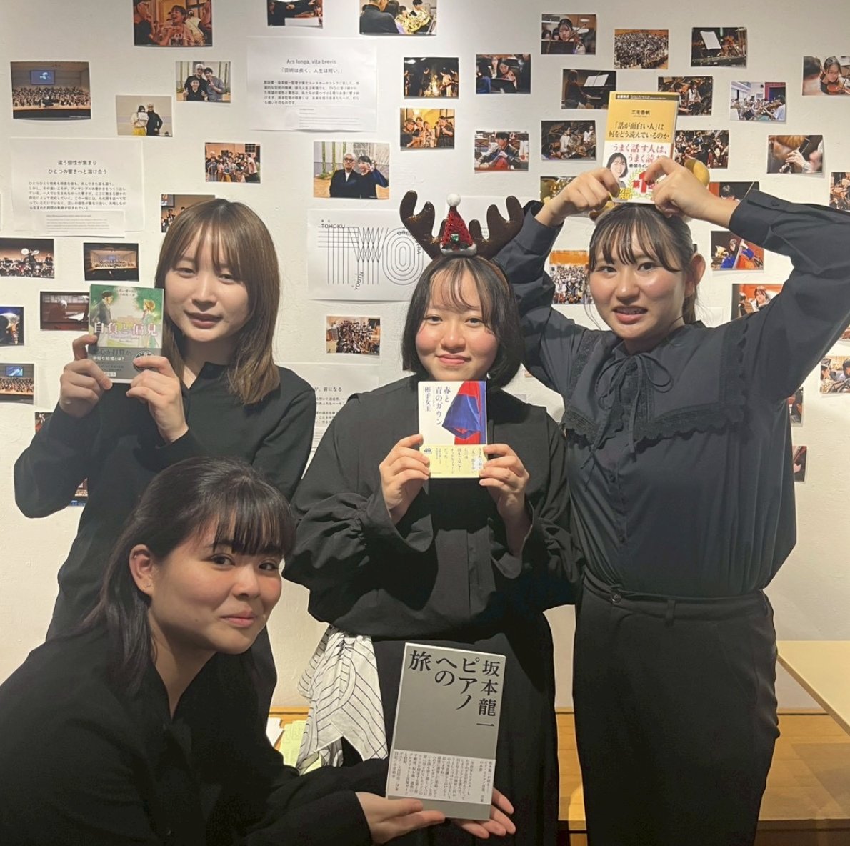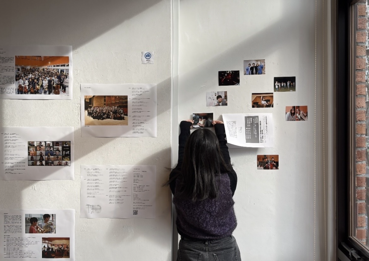 私は東京に住んでいるので初日22日に朝早く会場設営スタッフとして呼ばれ、主に写真展の写真を貼るなどしていました。写真の周りに監督の言葉やTYOの目標などの紙も貼っていたのですが、ここでメンバーのOb.梶井かりんさんが才能を発揮。とても良いバランスでいちばん広い壁にたくさんの写真を並べてくれました。さすが先輩。