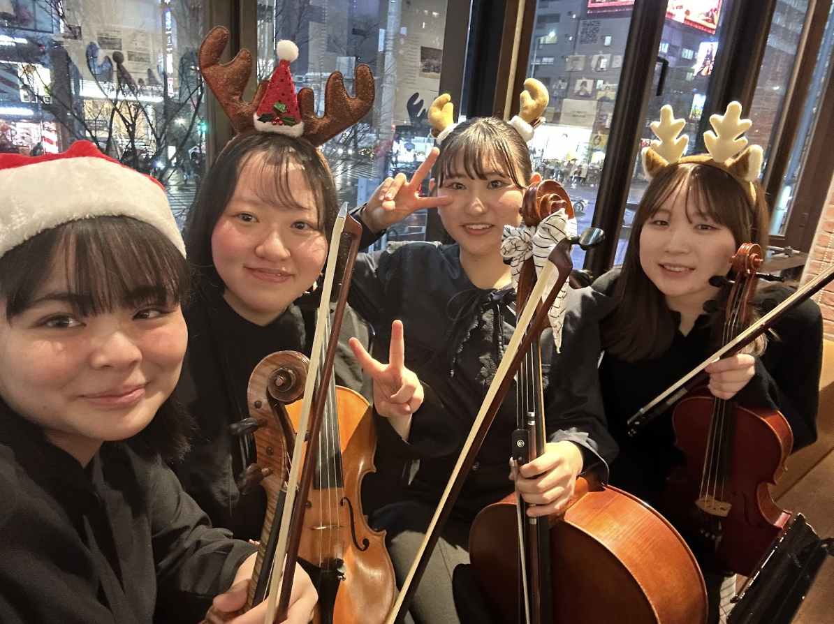 クリスマスということで、みんなでサンタ、トナカイになり演奏しました!